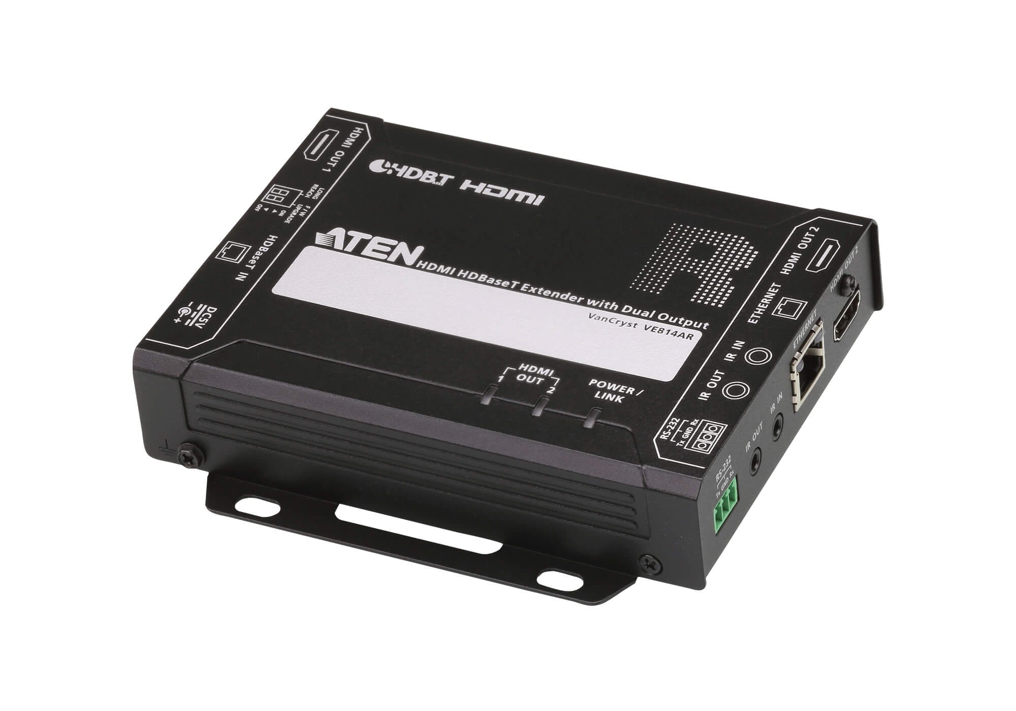 The VE814AR supports RS-232 and IR signaling pass-through, allowing you to control the HDMI source device from the remote unit (VE814AR) while granting access to the HDMI display device from the local unit (VE814AT). In addition, it supports Long Reach Mode that extends HDMI signals up to 150 m, 1080p, via a single Cat 5e/6 cable.