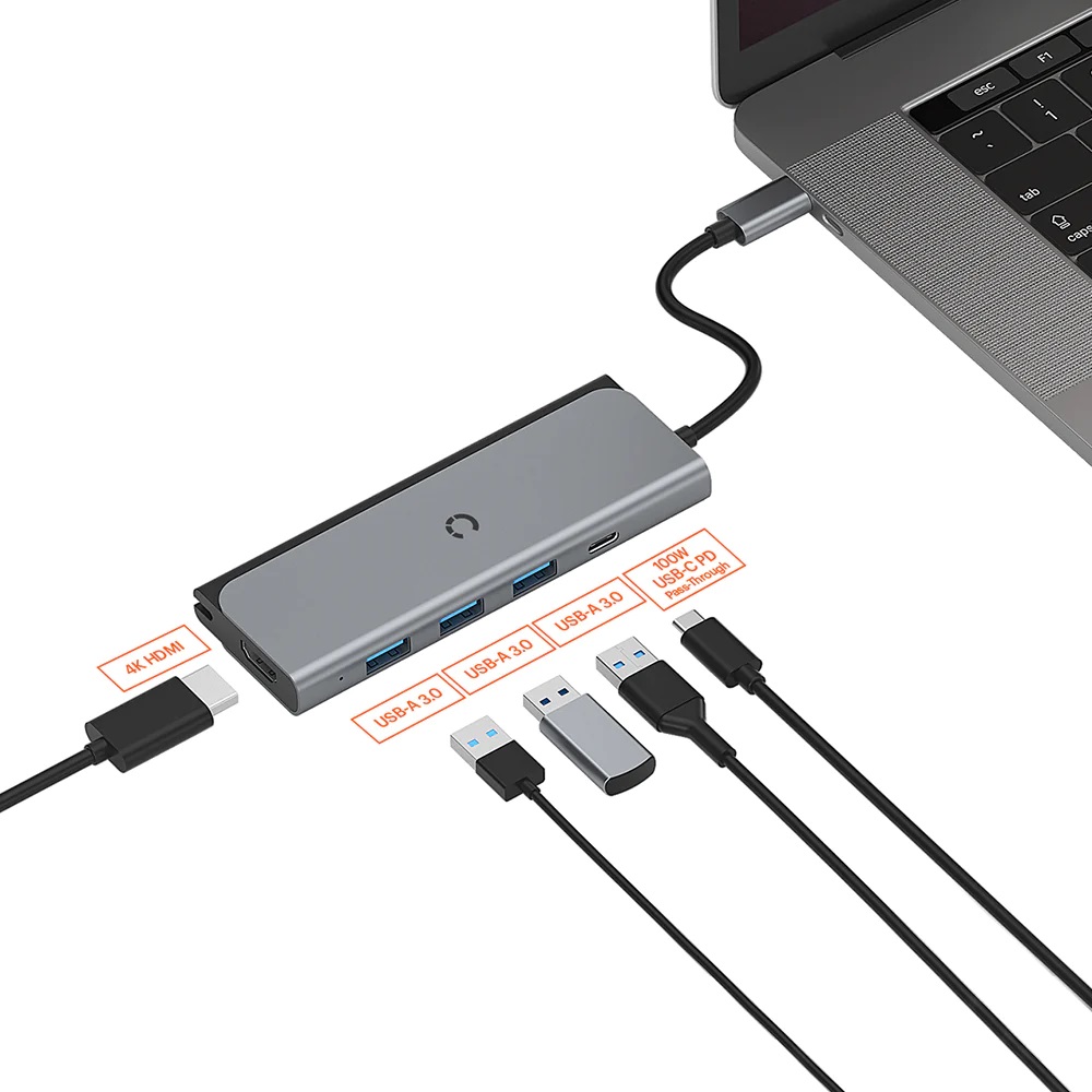 Combining all the essential ports in one slim, portable design TravelMate USB-C Hub effortlessly expands your connectivity options wherever you are. Enhance your productivity by adding a monitor via the high-resolution HDMI display port. Utilise the USB-A ports to connect accessories like your wireless mouse & keyboard or transfer data or image files from portable USB storage devices. Charge your laptop through the hub itself with 100W USB-C PD pass-through port.
