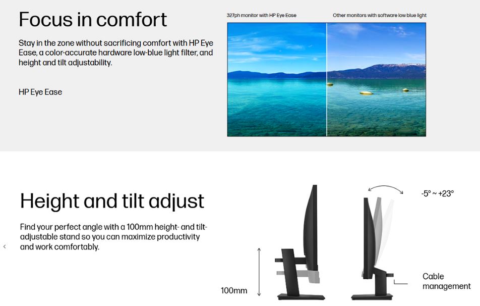 Low blue light Yes, HP Eye Ease (TÜV Low Blue Light Hardware Solution certified)