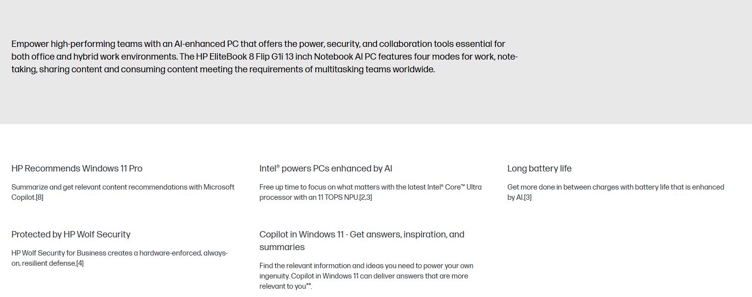 HP EliteBook 8 Flip G1i 13.3′ WUXGA TOUCH Intel U7-255U 32GB DDR5 512GB SSD Windows 11 PRO PEN Intel Arc GPU NPU 47 TOPS 3yrs OS 1.3kg