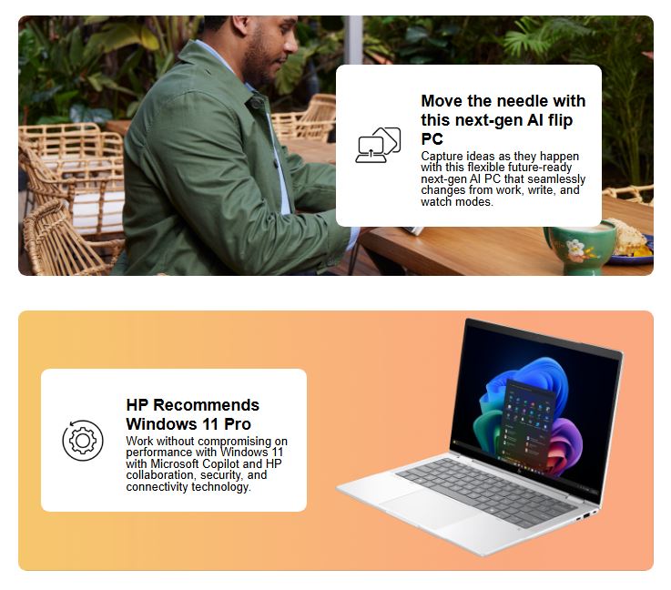 HP EliteBook X Flip G1i 14′ WUXGA TOUCH PVCY Intel U7-258V 16GB DDR5 512GB SSD WIN 11 PRO Intel Arc GPU NPU 47 TOPS Thunderbolt 3yrs OS 1.1kg