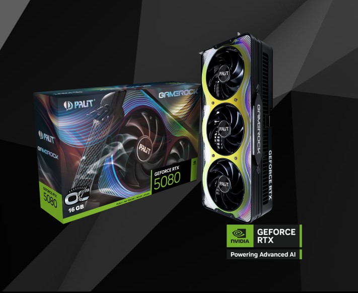 PALIT RTX5080 GAMEROCK OC 16GB GDDR7 256bit 3-DP HDMI ARGB PCI-E 5.0 NE75080T19T2-GB2030G