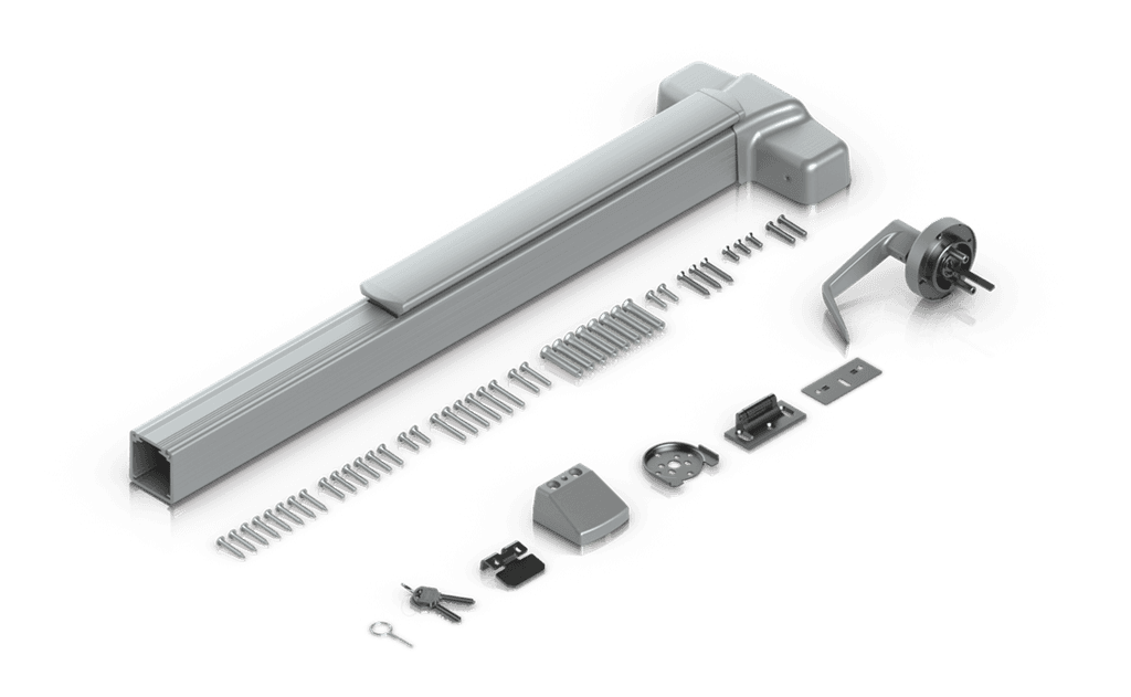 A single-latched bar installed on emergency exit doors, allowing quick and easy egress by pushing the bar to open the door during emergencies.